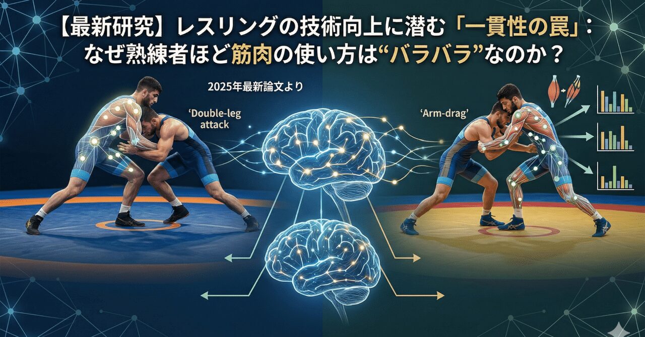 論文情報:Beinabaji, H., Eslami, M., Hosseininejad, S. E., Afrakoti, I. E. P., & Movaghar, A. F. (2025). Double-leg attack vs. arm-drag: Examining muscle synergy consistency between elite and sub-elite freestyle wrestlers. Journal of Biomechanics, 183, 112637.